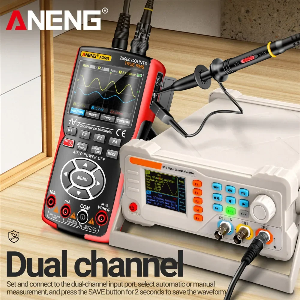 ANENG AOS03 Digital Multimeter 280MS Rate PC Waveform 50MHz Bandwidth Data Storage Dual Oscilloscope Signal Generator Tools