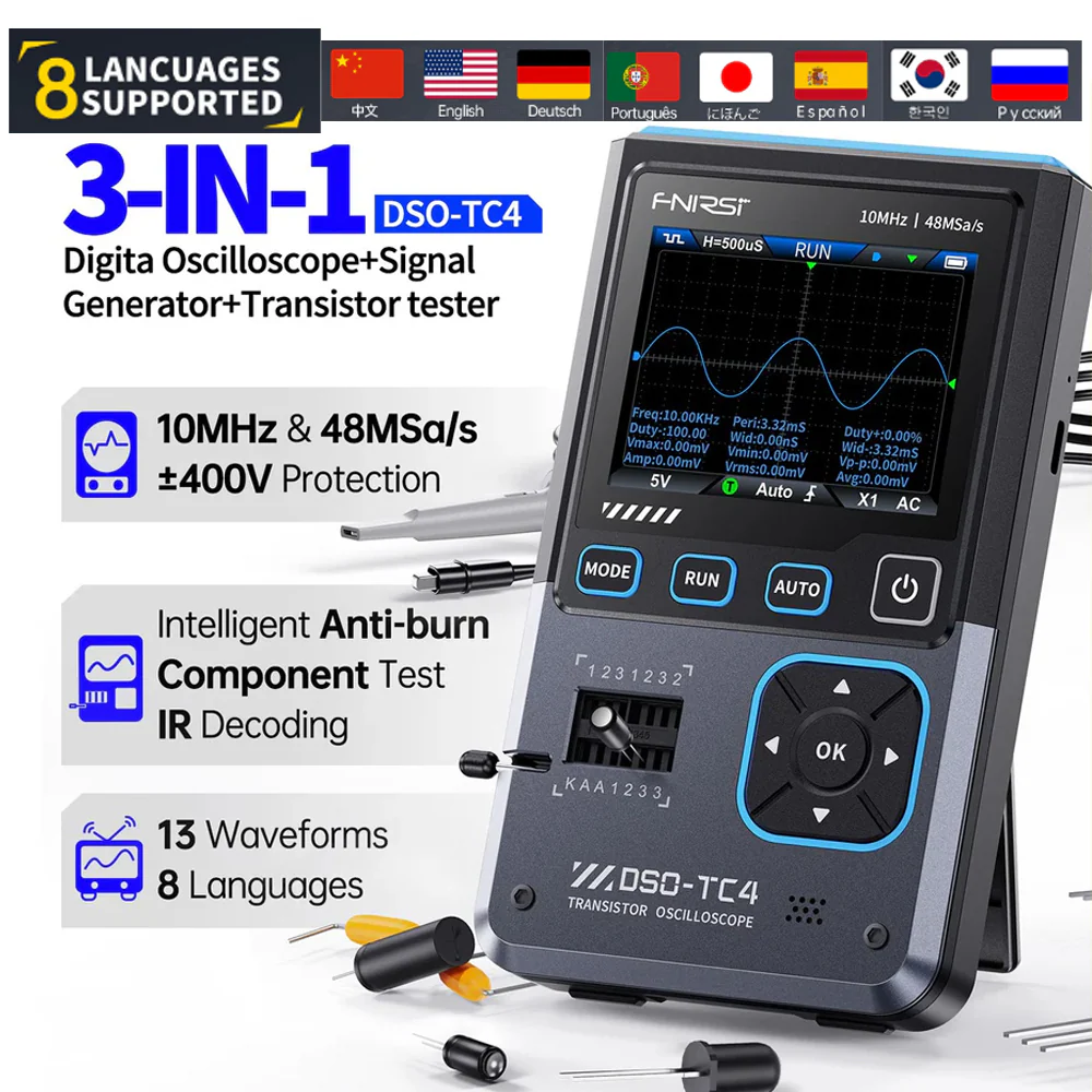 FNIRSI® DSO-TC4 3-IN-1 10MHz 48MSa/s Digital Oscilloscope Transistor Tester Signal Generator