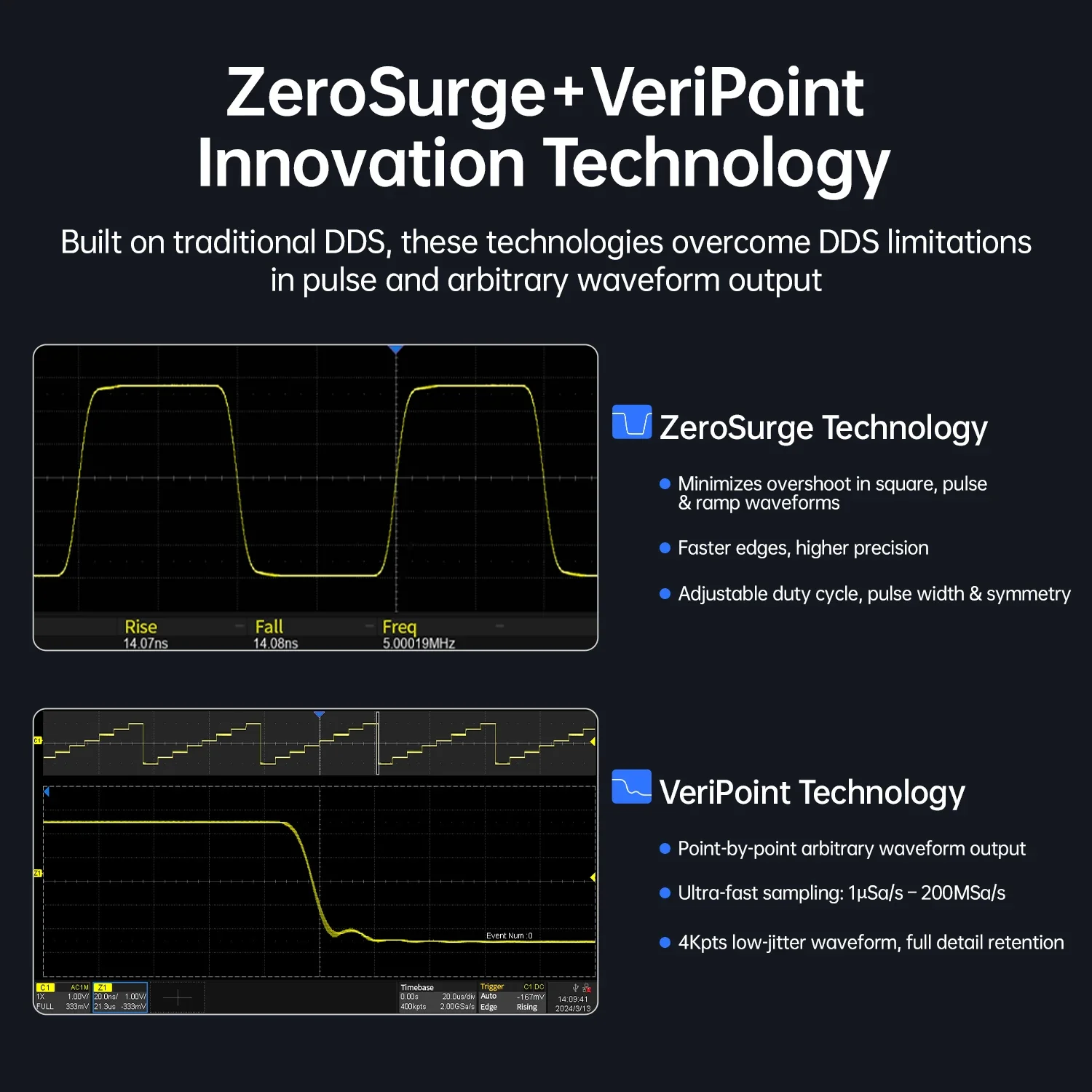 ◉ ZeroSurge + VeriPoint Tech: Low Overshoot, Fast Edges, Ultra-Fine Detail
