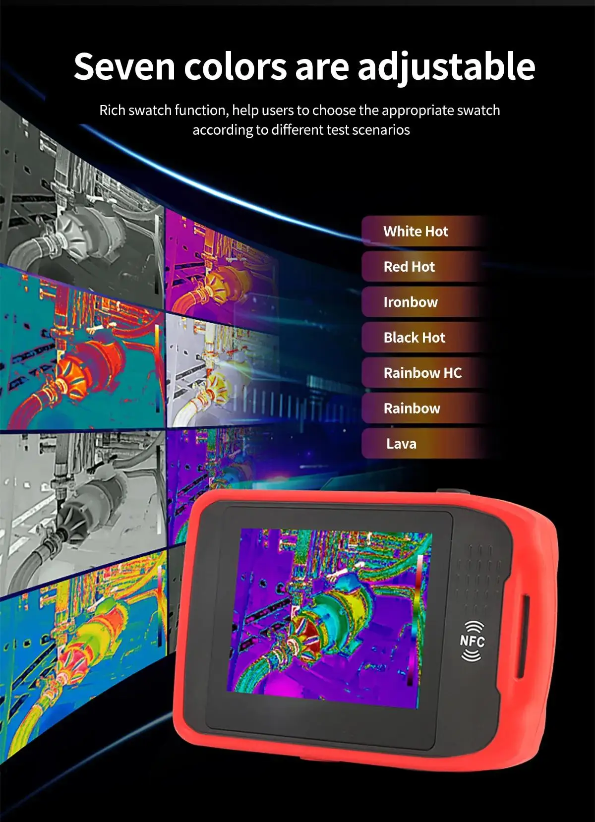 UTi260T is a powerful portable pocket type infrared thermal imager suitable for pipeline inspection, industrial manufacturing, refrigeration industry, construction, equipment maintenance, automotive repair, power industry, and more. This product comes with a 3.5-inch IPS capacitive touch screen, 256 × 192 resolution, image fusion, high and low temperature tracking, NFC quick connection to hotspots, and can be used with a Smart meter. It is a cost-effective thermal imaging product.
